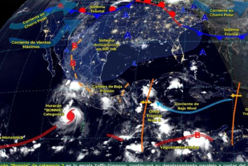 Conagua pronosticó el ingreso de la nueva Onda Tropical número 9 que recorrerá la Península de Yucatán, provocando lluvias fuertes a puntuales muy fuertes acompañadas de descargas eléctricas en dicha región.