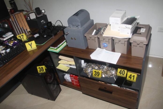 En el primer predio, los policías detuvieron en flagrancia a los imputados y aseguraron 41 gramos 800 miligramos de clorhidrato de metanfetamina, seis gramos 300 miligramos de cocaína, 25 cigarros electrónicos, nueve teléfonos celulares, una tableta electrónica, tres computadoras portátiles, dos básculas (dos digitales y una análoga) y 98 mil 729 pesos en billetes y monedas de diferentes denominaciones.