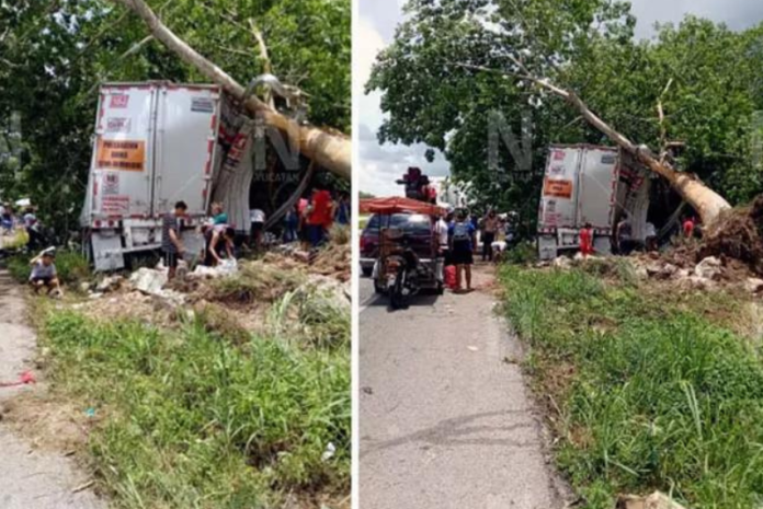 El chofer de un camión que transportaba leche se accidentó este martes en la carretera federal Mérida-Cancún, cuando iba con dirección de la capital yucateca a Valladolid.