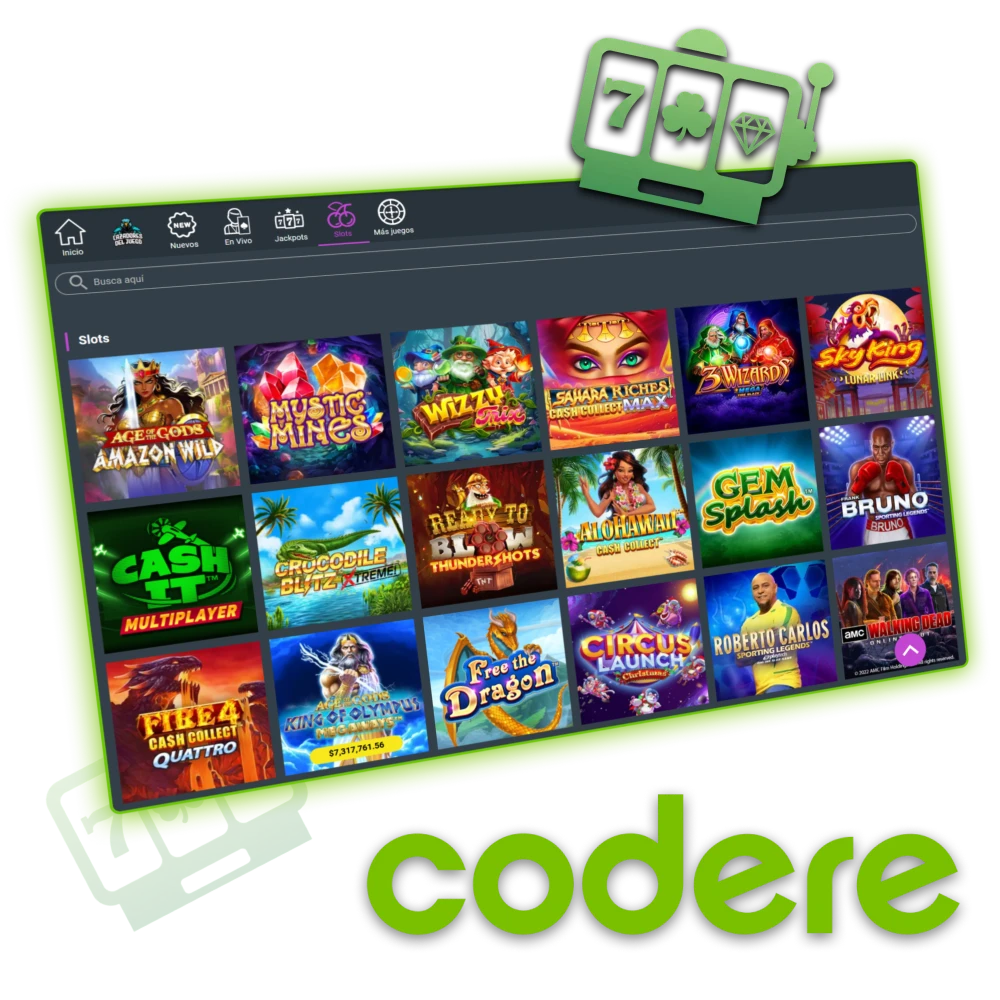 Explora los juegos de slots disponibles en el sitio oficial de Codere Casino.